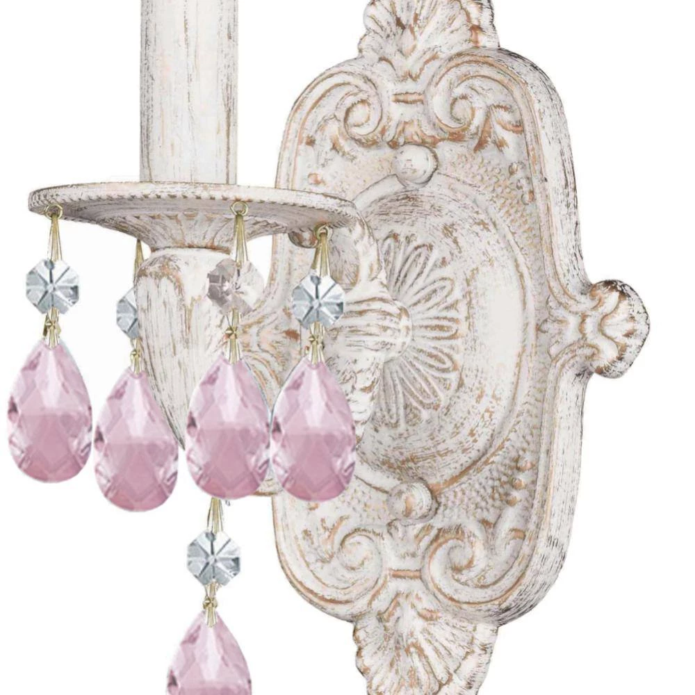 - Youth sconce fixture trimmed with rose colored hand cut crystal will brighten up your home