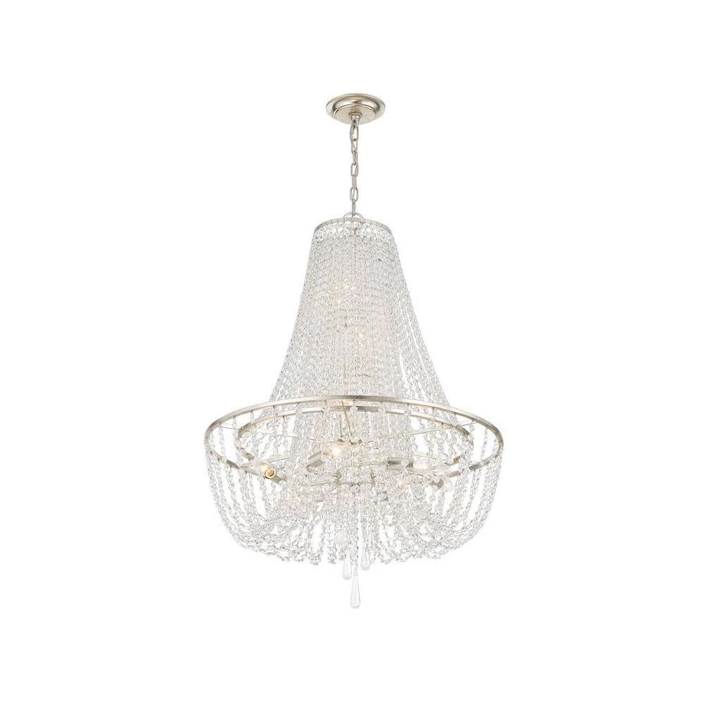 The glamorous Arcadia light features strands of faceted cut crystal jewels draped from a simple frame, creating a bowl-shaped silhouette. Designed to grace a bedroom, hallway, or entry this dazzling fixture will transform a room with its traditional elegance. Crystorama is known for its standout lighting, which is exceptional in quality and design.
