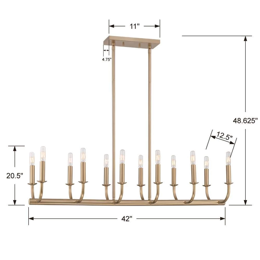 - 12-light 60-Watt, E12 candelabra base