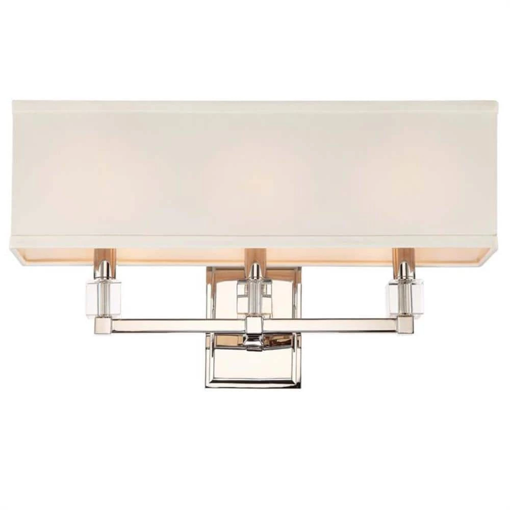 The Dixon features a simple geometric shape with a masculine silhouette bringing urban elegance to your home. For use in dining rooms, bedrooms or living rooms, the sleek, heavy squared frame is accompanied by white silk rectangular shades and gleaming crystal cubes is a beautiful choice in both transitional and contemporary homes. Crystorama is known for its standout lighting, which is exceptional in quality and design.