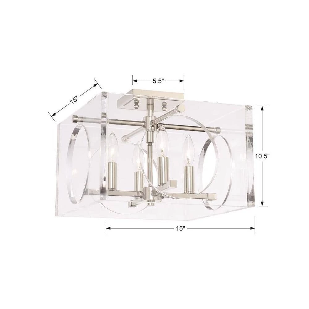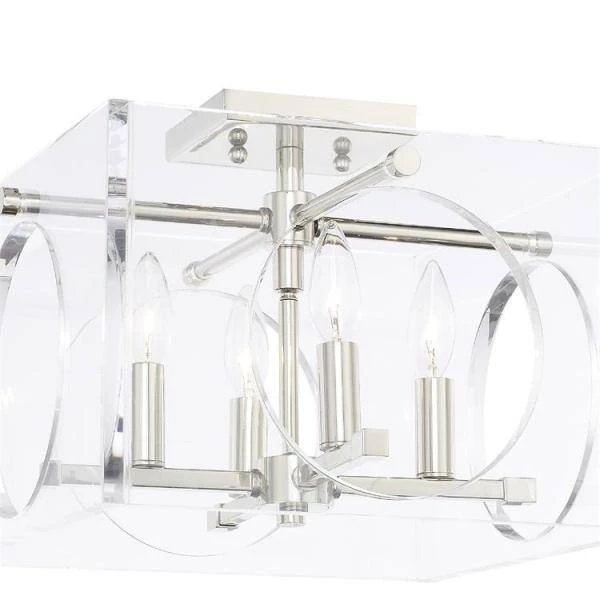 Turning today’s most popular home decor trends into fashionable lighting, Crystorama’s Drake Collection features an innovative fusion of solid chunky lucite and geometric crossbars in a sophisticated, polished nickel finish. Both modern and clean, this boxy fixture is a beauty from all angles. Crystorama is known for its standout lighting, which is exceptional in quality and design.