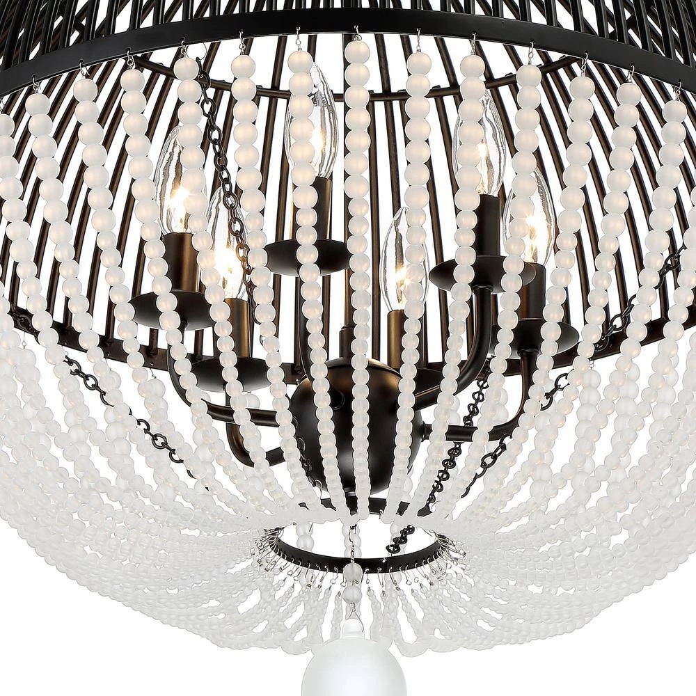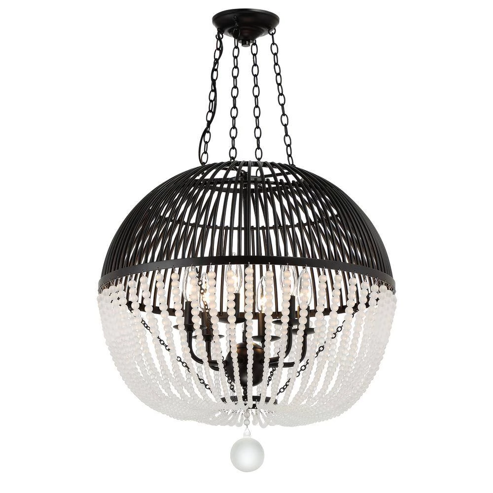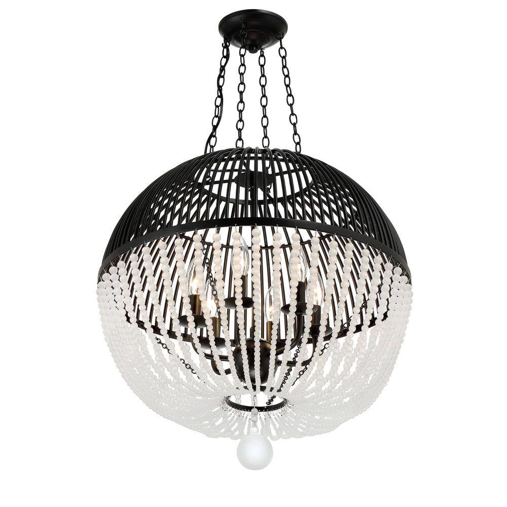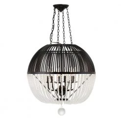 Showcasing a sphere silhouette, the Duval Chandelier mixes material with striking simplicity. The caged design in matte black meets the high contrast of rows of flowing frosted glass beads. The mixed materials add high contrast and beautiful dimension to a room. The Duval will make a statement anywhere it’s placed. Crystorama is known for its standout lighting, which is exceptional in quality and design.