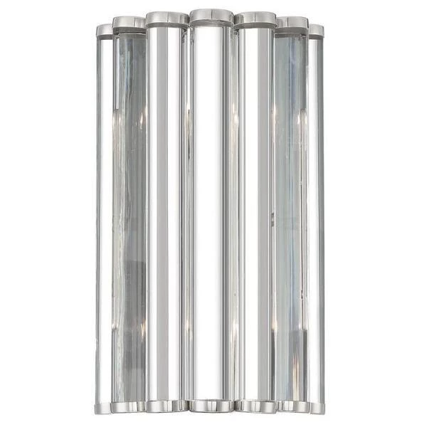 The Elliot collection, designed by Libby Langdon, is a sleek and almost masculine collection featuring a series of chunky glass rods and a polished nickel frame to highlight the shape. The fixture’s view from below is as important as what it looks like from the side. The metalwork follows the shape of the circular rods creating a scallop pattern. The filtered light bounces between the glass rods and gives off a beautiful glow. Architectural in nature, the Elliot is a modern take on a crystal-style chandelier. Crystorama is known for its standout lighting, which is exceptional in quality and design.