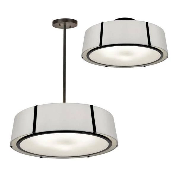 - Features a metal ring and glass diffuser. Convertible; can be installed as a chandelier or ceiling mount