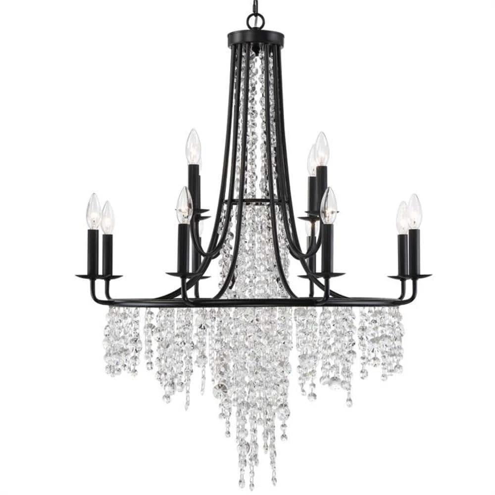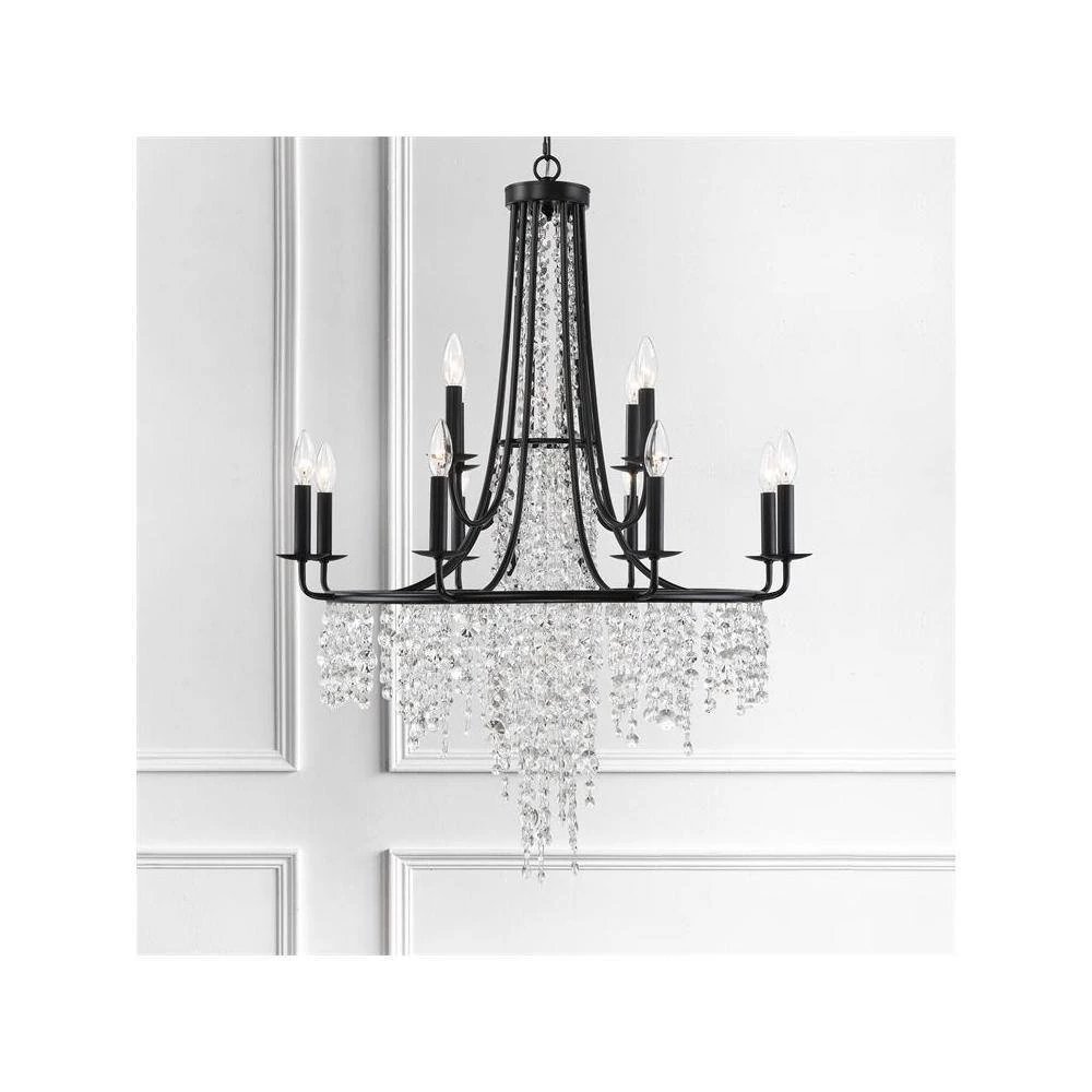 The beautiful Gabrielle silhouette is made of cascading faceted hand-cut crystal strands suspended from its delicate frame. The framework is crafted in wrought iron and available in antique gold, and matte black finishes. Elevate your living space and add character to a room with a shimmering crystal chandelier. Crystorama is known for its standout lighting, which is exceptional in quality and design.