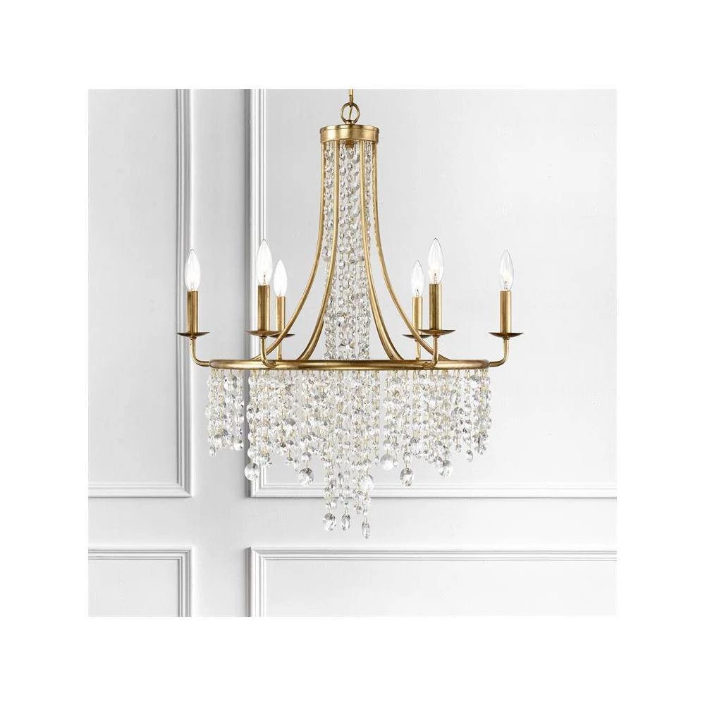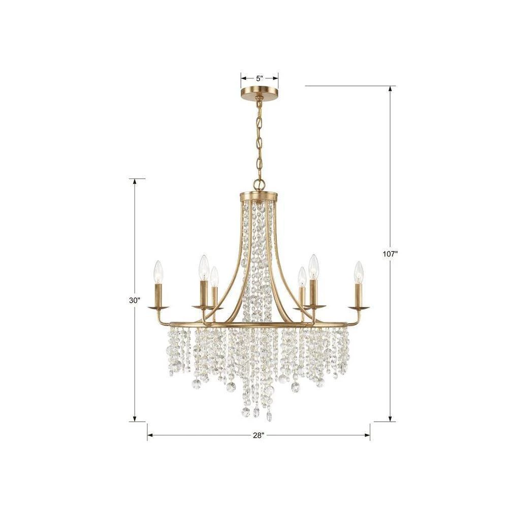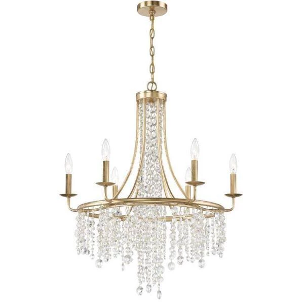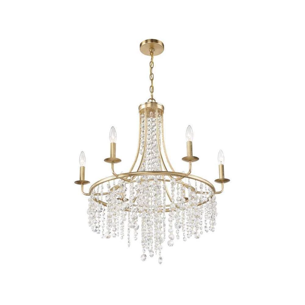 The beautiful Gabrielle silhouette is made of cascading faceted hand-cut crystal strands suspended from its delicate frame. The framework is crafted in wrought iron and available in antique gold, and matte black finishes. Elevate your living space and add character to a room with a shimmering crystal chandelier. Crystorama is known for its standout lighting, which is exceptional in quality and design.