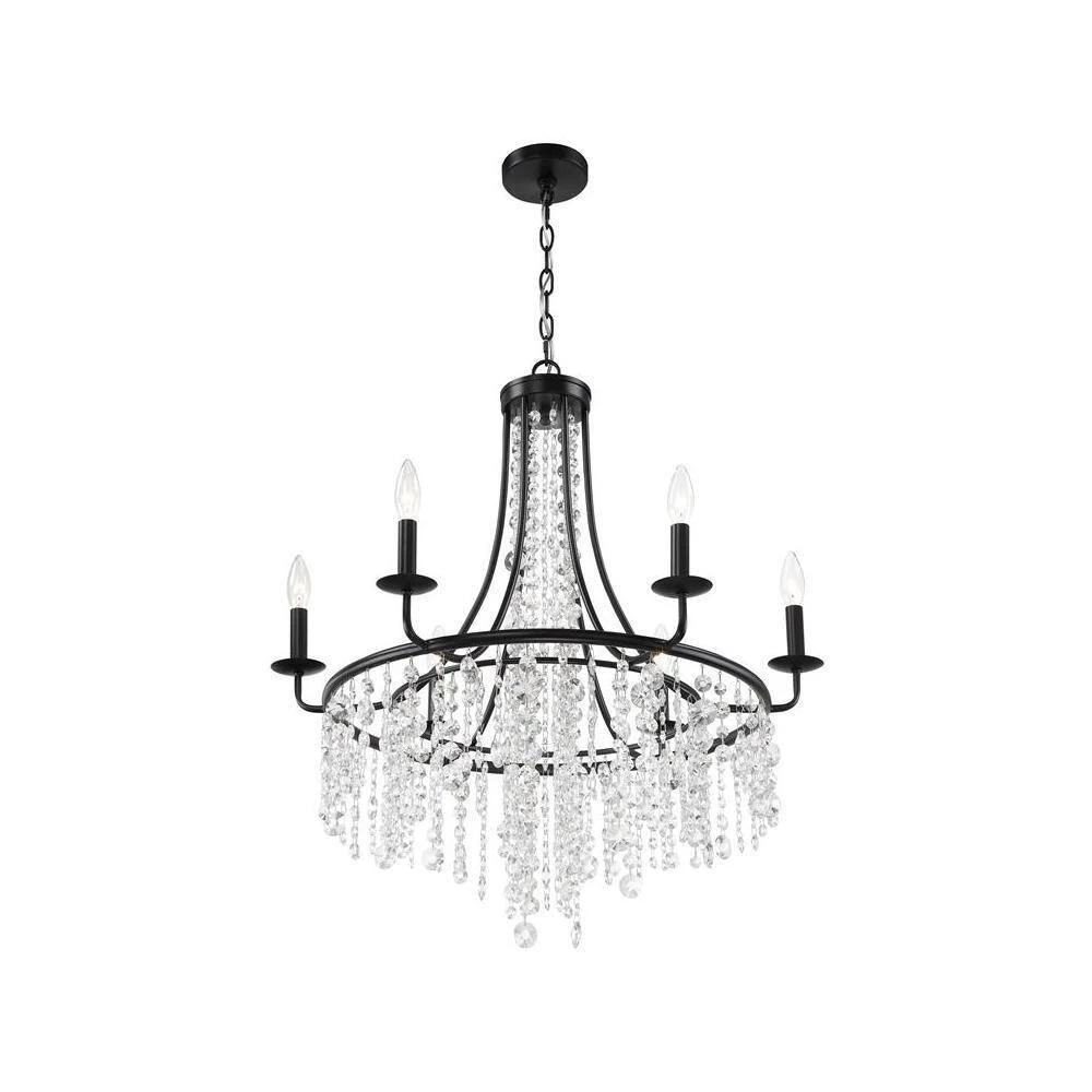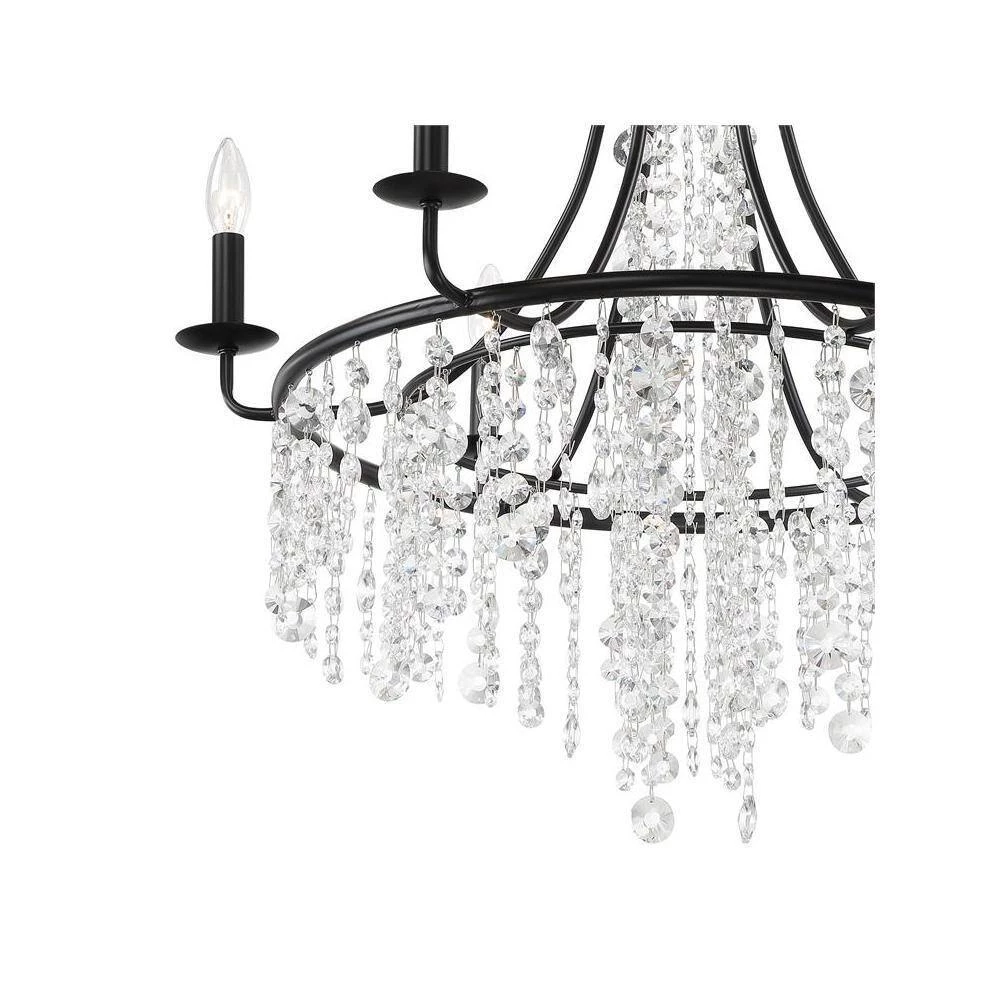 The beautiful Gabrielle silhouette is made of cascading faceted hand-cut crystal strands suspended from its delicate frame. The framework is crafted in wrought iron and available in antique gold, and matte black finishes. Elevate your living space and add character to a room with a shimmering crystal chandelier. Crystorama is known for its standout lighting, which is exceptional in quality and design.