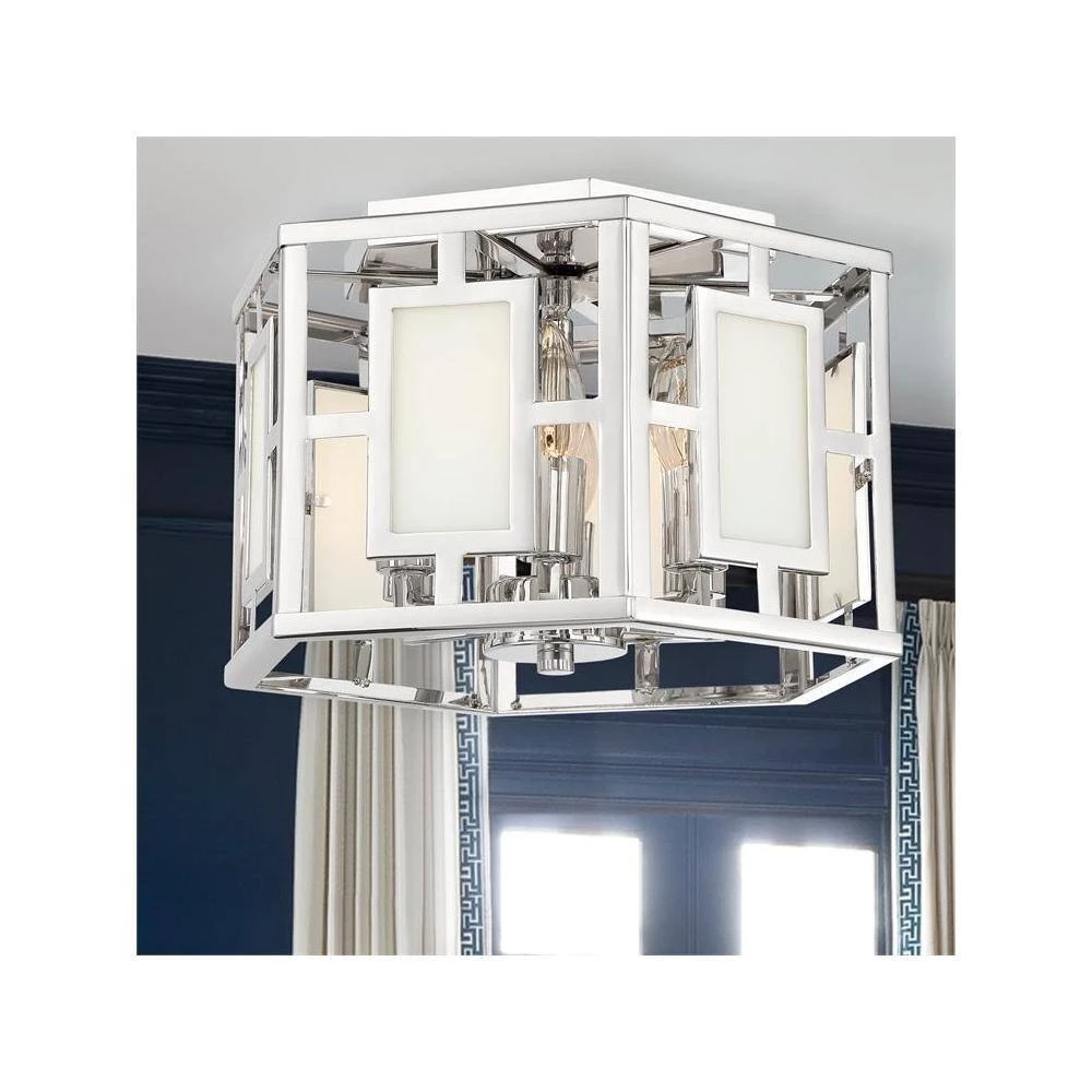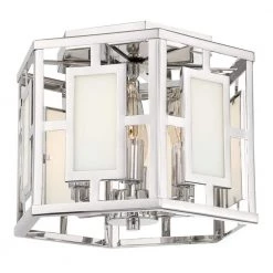 The Hillcrest Collection designed by Libby Langdon adds a sense of practical luxury to your home. The fixture features a geometric square sequence of white glass pattern creating an eye-catching contrast that is timeless and functional. The airy aesthetic of this fashionable drum will easily match to your home’s traditional, contemporary or modern living spaces. Crystorama is known for its standout lighting, which is exceptional in quality and design.