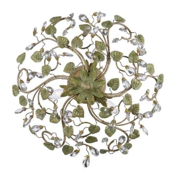 The color-driven Josie is feminine in feel with an organic rhythm. The natural floral elements are a hand-painted green tea and champagne color which adds a refreshing burst of colors to your decor. With its sparkling faceted cut crystal jewels, this light is great to add a bit of whimsical glamour to any setting. Crystorama is known for its standout lighting, which is exceptional in quality and design.