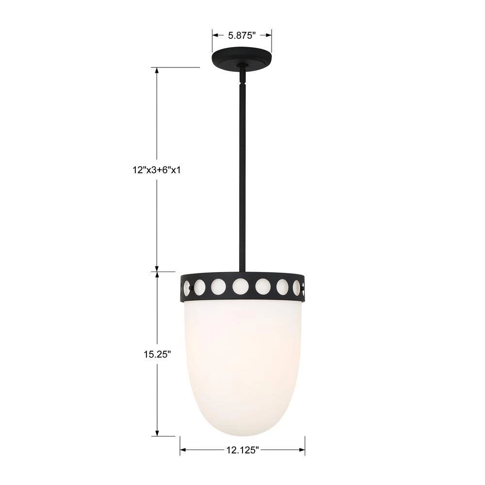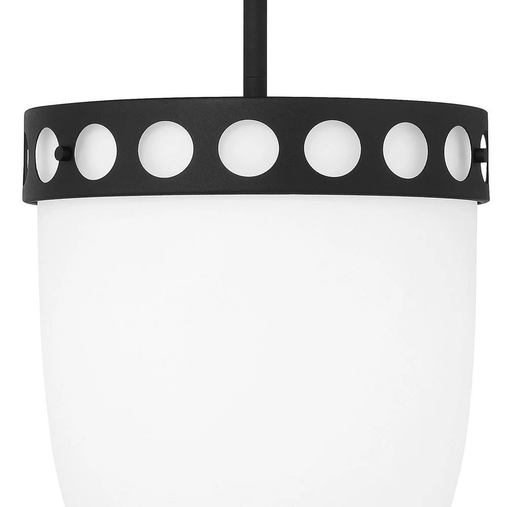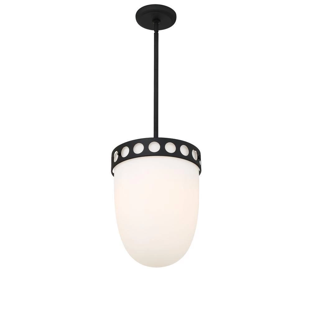 The Kirby pendant has a stylish silhouette that exudes classic appeal. The opal white glass shade filters beautiful light that evenly illuminates a warm glow. The Kirby is accented at the top with a geometric pattern giving it a unique look. Hang this fixture in multiples over a kitchen island to make a real impact on an interior. Crystorama is known for its standout lighting, which is exceptional in quality and design.