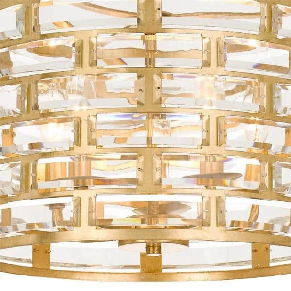 Rich faceted cut crystal meets clean golden lines resulting in vibrant style for any home. Candelabra lights shine through the open drum design of the Meridian. The rhythmic frame features rich curved faceted cut crystal jewels arranged on a contemporary frame. This statement piece is perfect to add grandeur to a dining room, hallway or bedroom. Crystorama is known for its standout lighting, which is exceptional in quality and design.