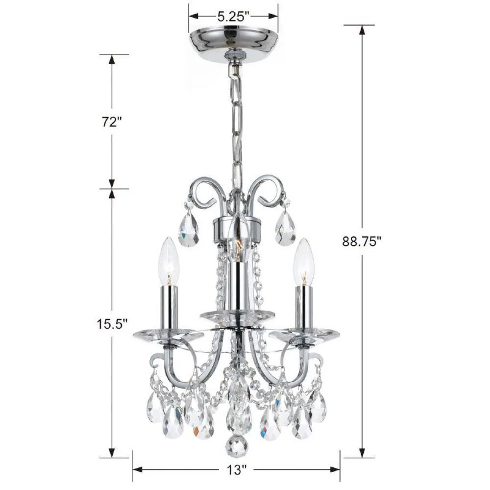 Elegant shades are enriched with ornate crystal for an updated look to a classic drum chandelier in the Othello collection. This mini chandelier features detailed scroll metal work finished in polished chrome and is draped with stunning clear hand cut crystal. Perfect for a living room, dining room, or even an entryway, this fixture will be a conversation starter in any space.