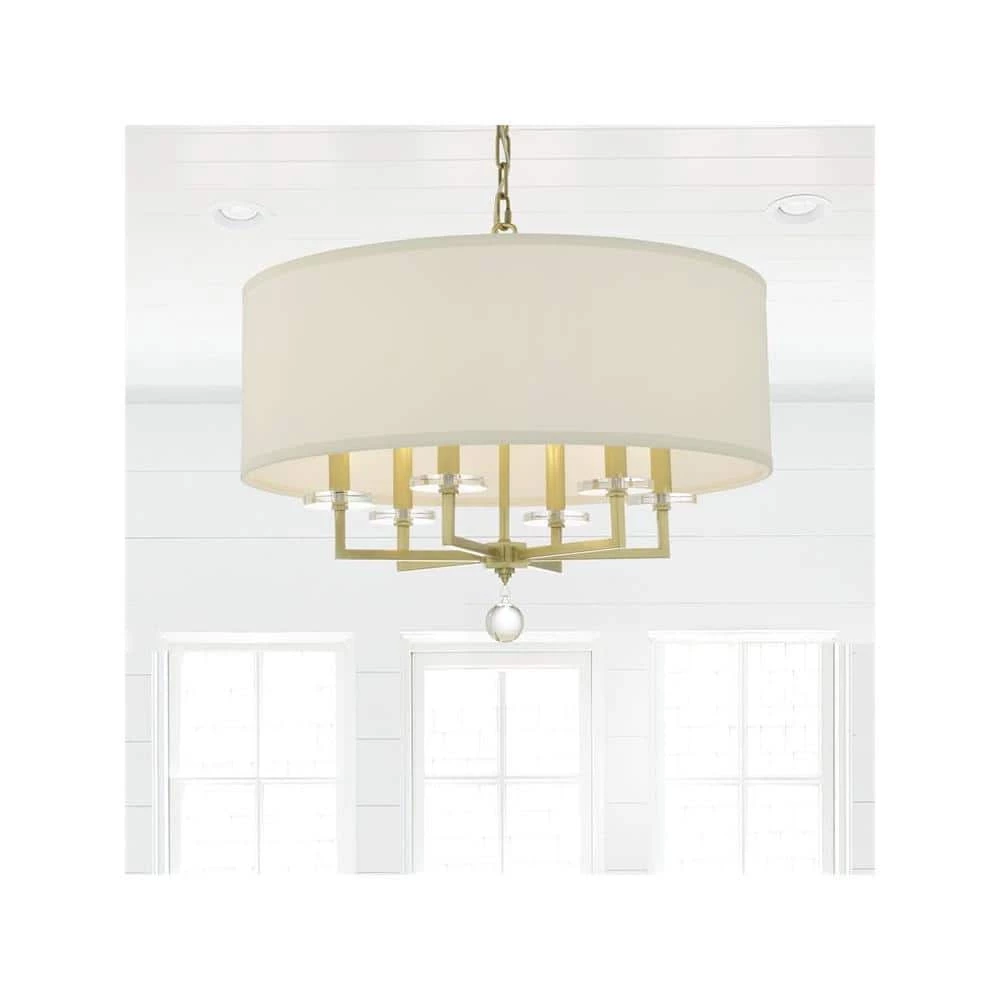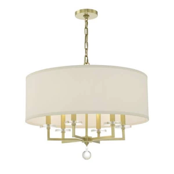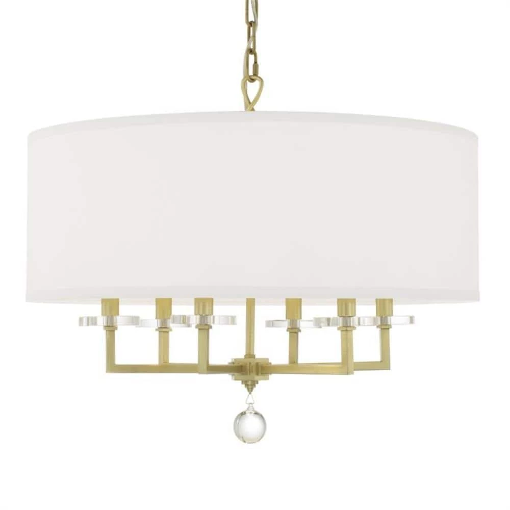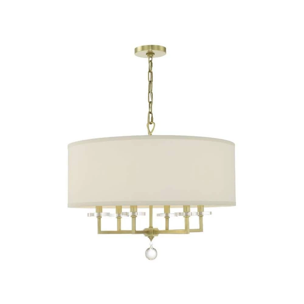 The Paxton collection combines geometrically arranged chunky glass bobeches with a frame of super-sleek, tapered crystal column ending with a single hanging glass ball. The delicate lines of the shapely frame, combined with the precisely balanced arms and simple, tailored shade, create a clean, transitional feeling with a distinct, mid-century modern flair. Stylish, modern and minimal, Paxton brings luxurious appeal to a variety of interior spaces. Crystorama is known for its standout lighting, which is exceptional in quality and design.