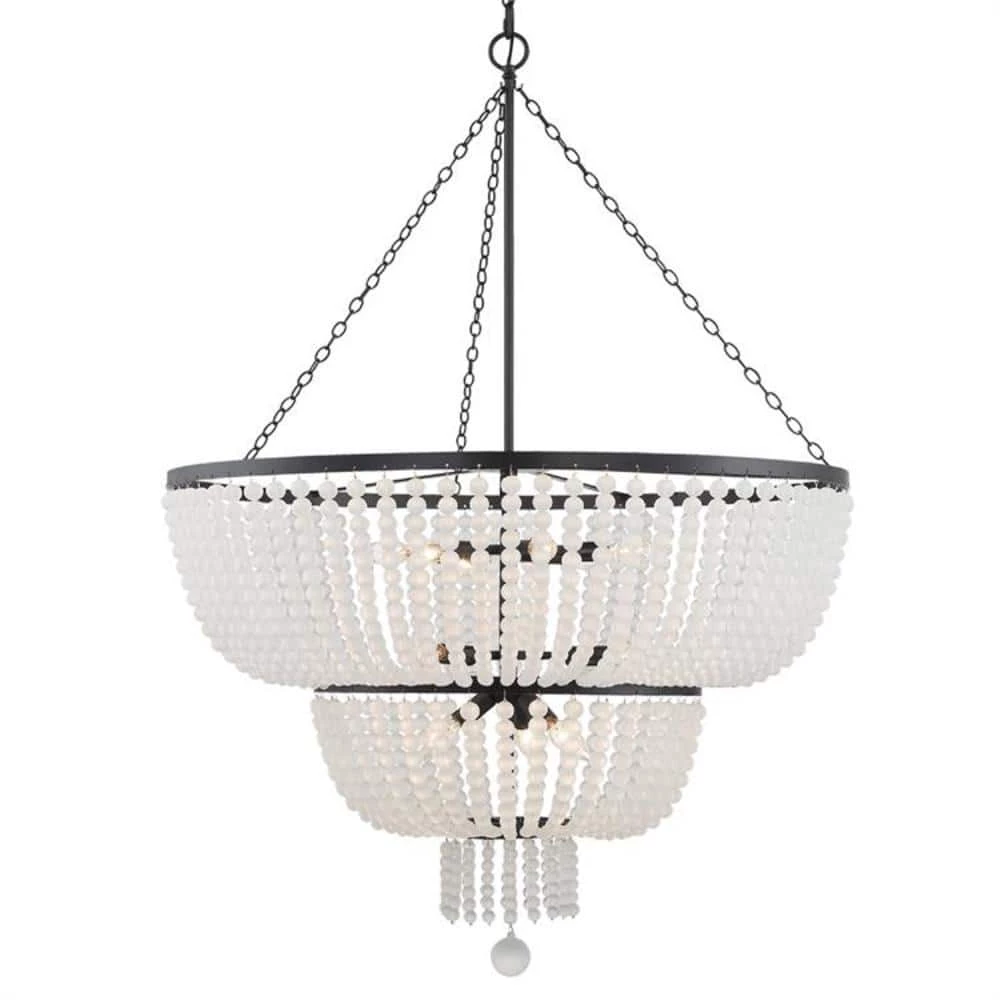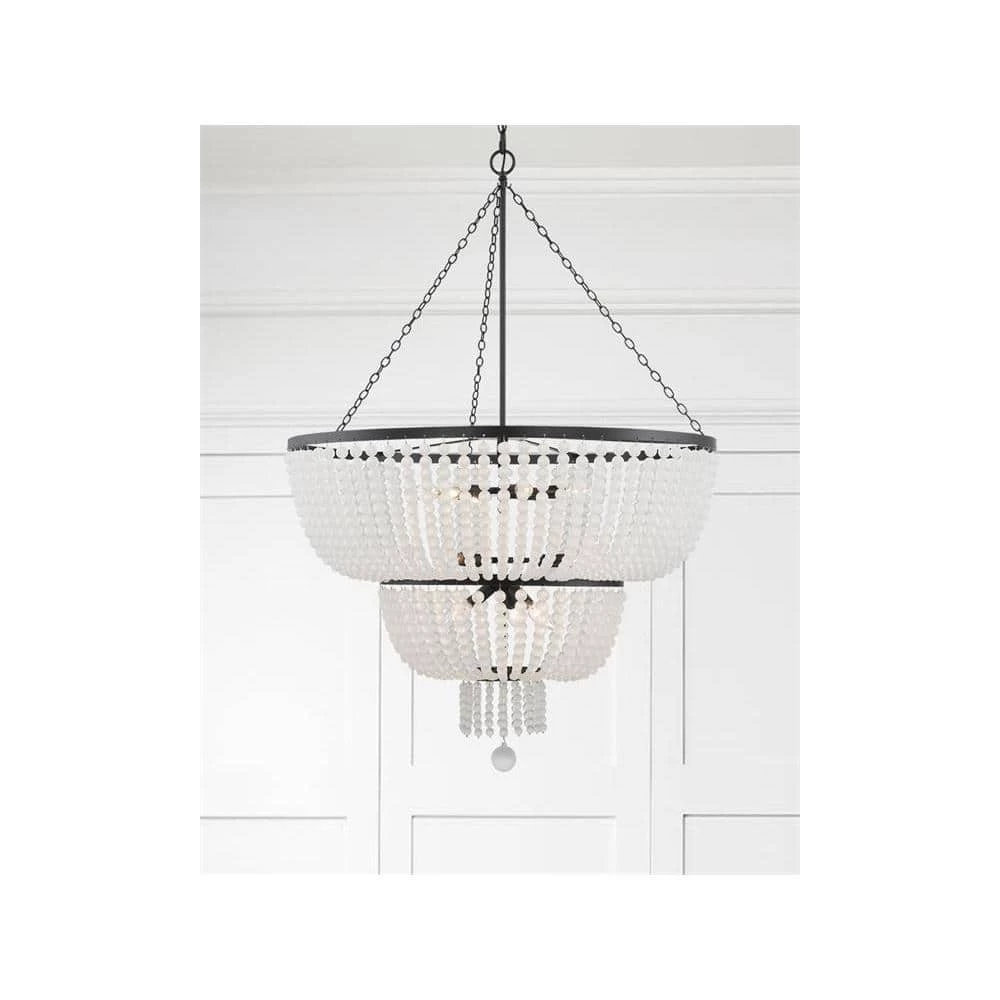 A traditional Empire shape meets modern elements in Crystorama’s Rylee Collection. A circular-shaped hand painted frame gives this fixture a vintage, distressed look, while the beads lend to a bohemian style flare. In a perfect combination of texture and materials, the Rylee creates a rich visual impact to any space. Crystorama is known for its standout lighting, which is exceptional in quality and design.