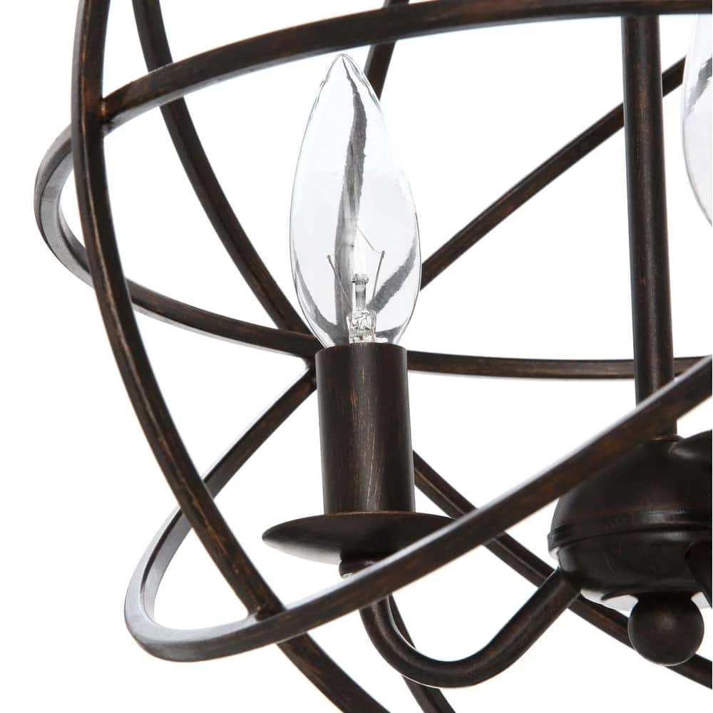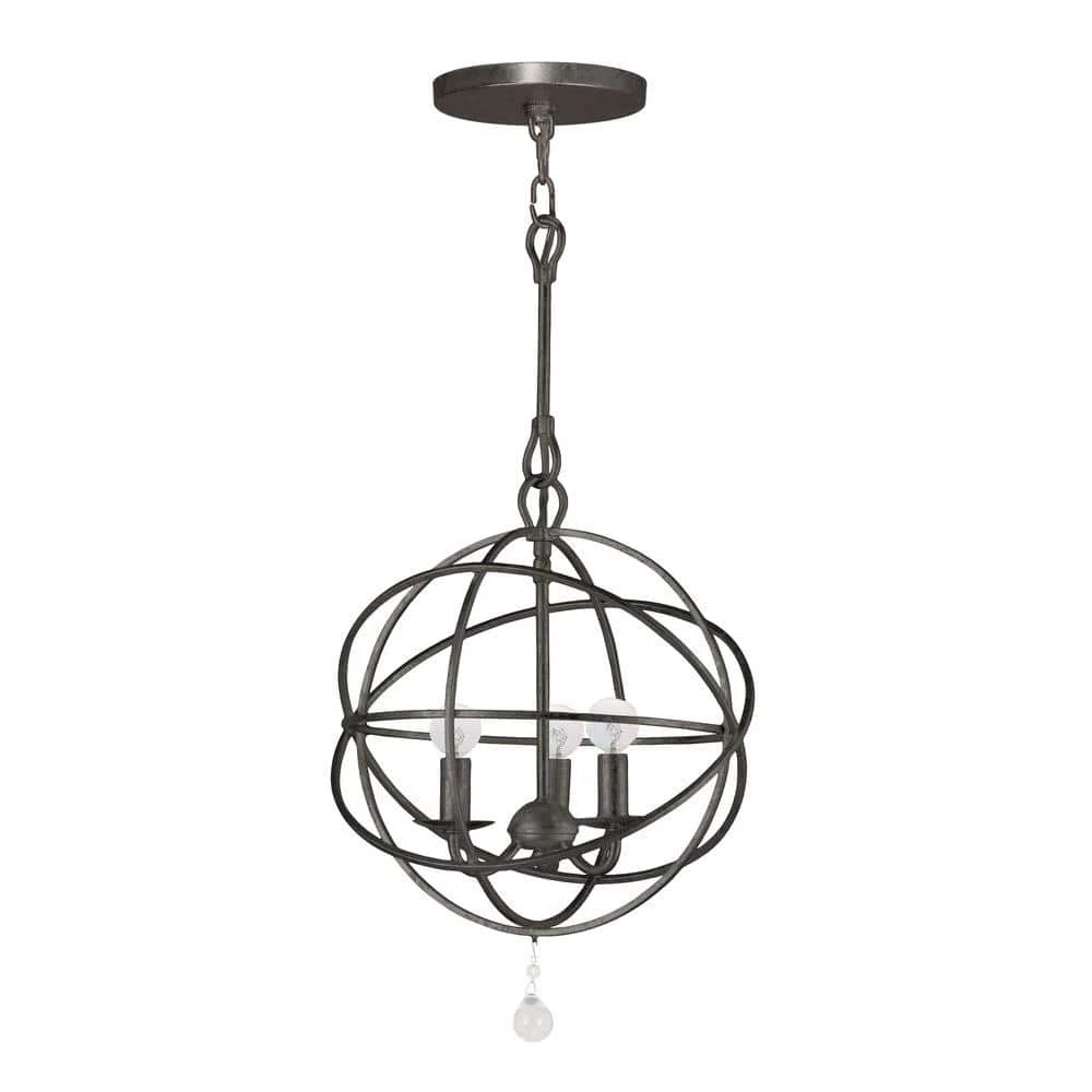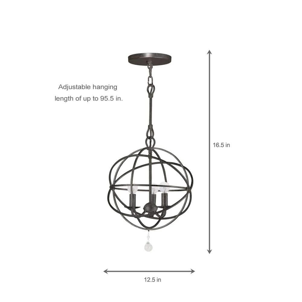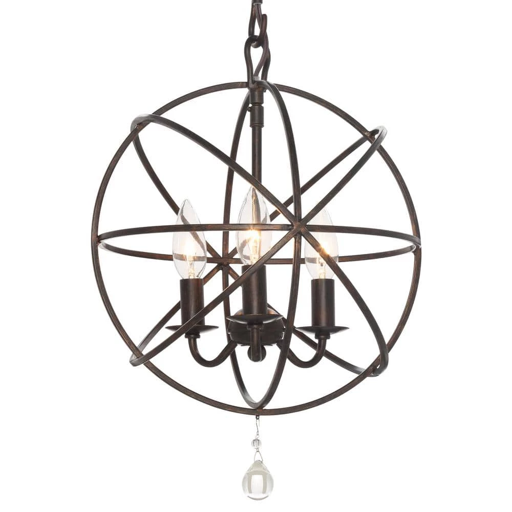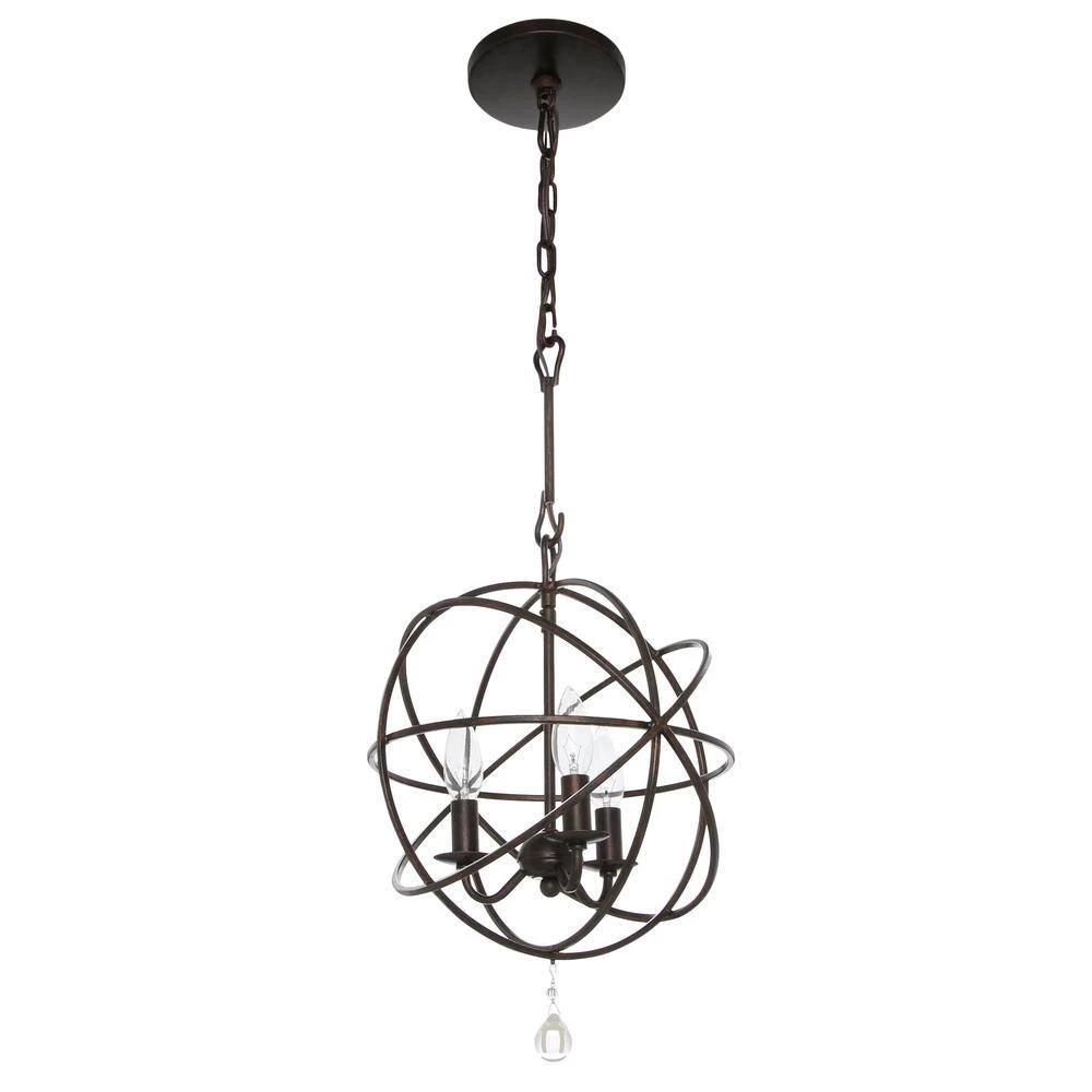 Featuring timeless looks, the Solaris 3-Light Indoor Orb Chandelier brings versatility to any decor, from ultra-modern to country cottage. Featured in an English bronze finish for ageless elegance, the frame is constructed from steel for durability. Orbiting rings surround three sculptured bulbs, making this fixture the perfect luxurious centerpiece in your space.