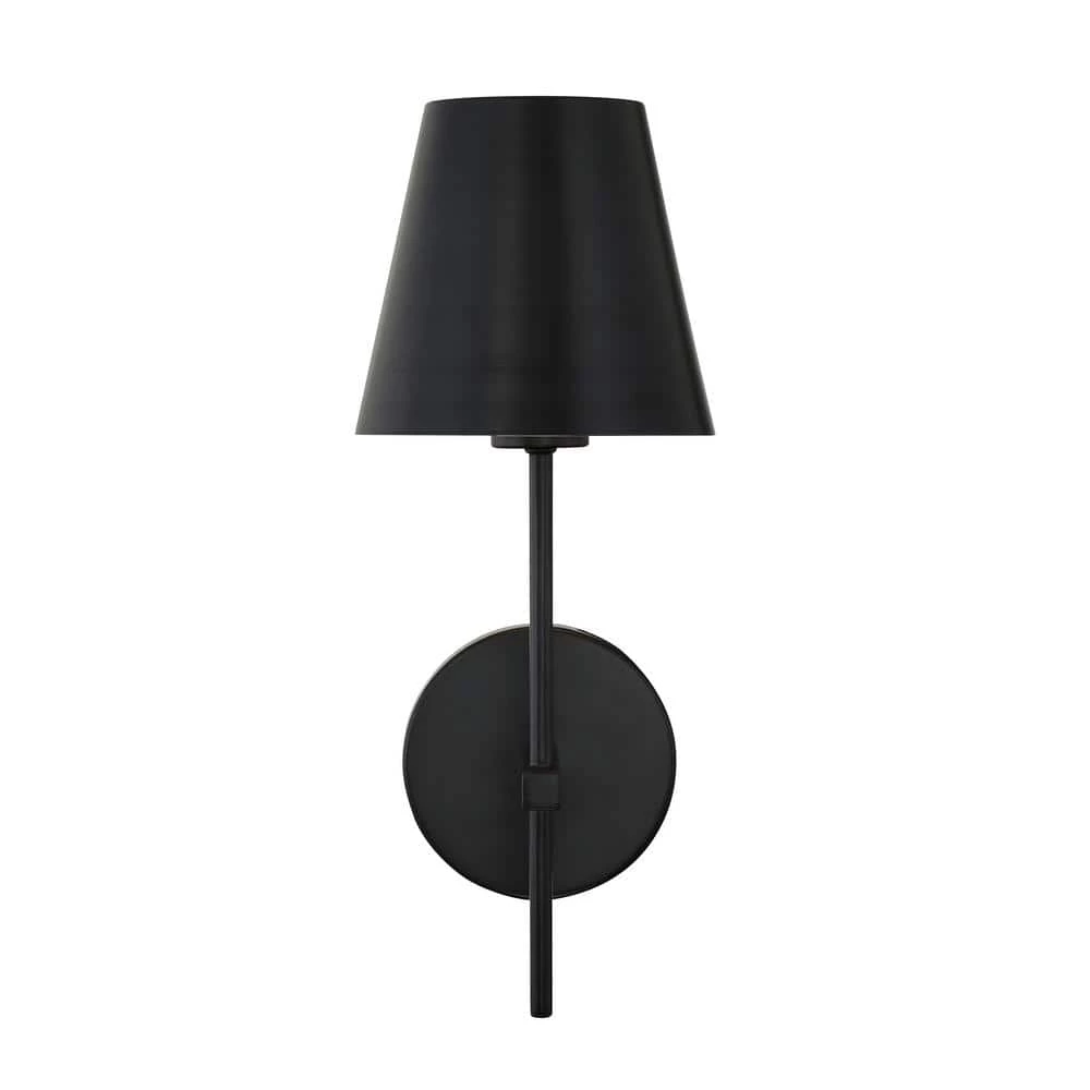 Contrasting Vibrant Gold and Matte Black come together in perfect harmony in this minimalist wall sconce. Extending from a circular backplate, a slender arm is topped with a tapered metal shade. The Xavier wall sconce is a simple and sophisticated addition to any room. Crystorama is known for its standout lighting, which is exceptional in quality and design.