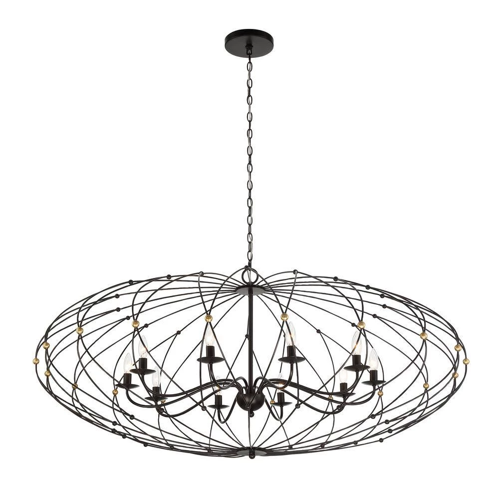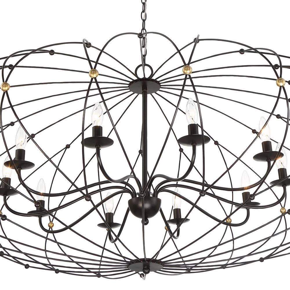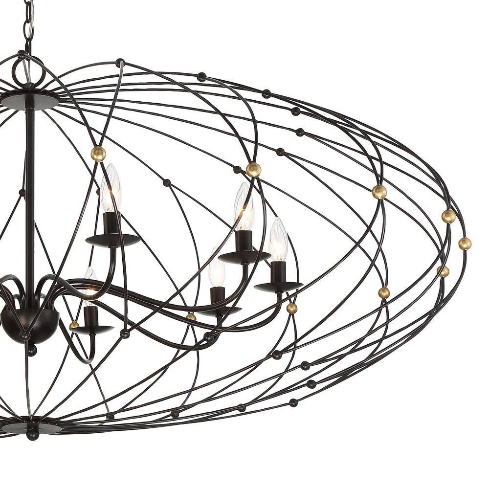 The simplicity of bohemian design takes center stage in our spherical Zucca collection. Zucca, which means pumpkin in Italian, features a saucer-shaped metal wire ring frame finished in English Bronze with Antique Gold accents. The woven mixed metal design adds visual interest to a space while still combining just the right sophistication. Whether the look is rustic, industrial or boho, this light is as versatile as stylish. Crystorama is known for its standout lighting, which is exceptional in quality and design.